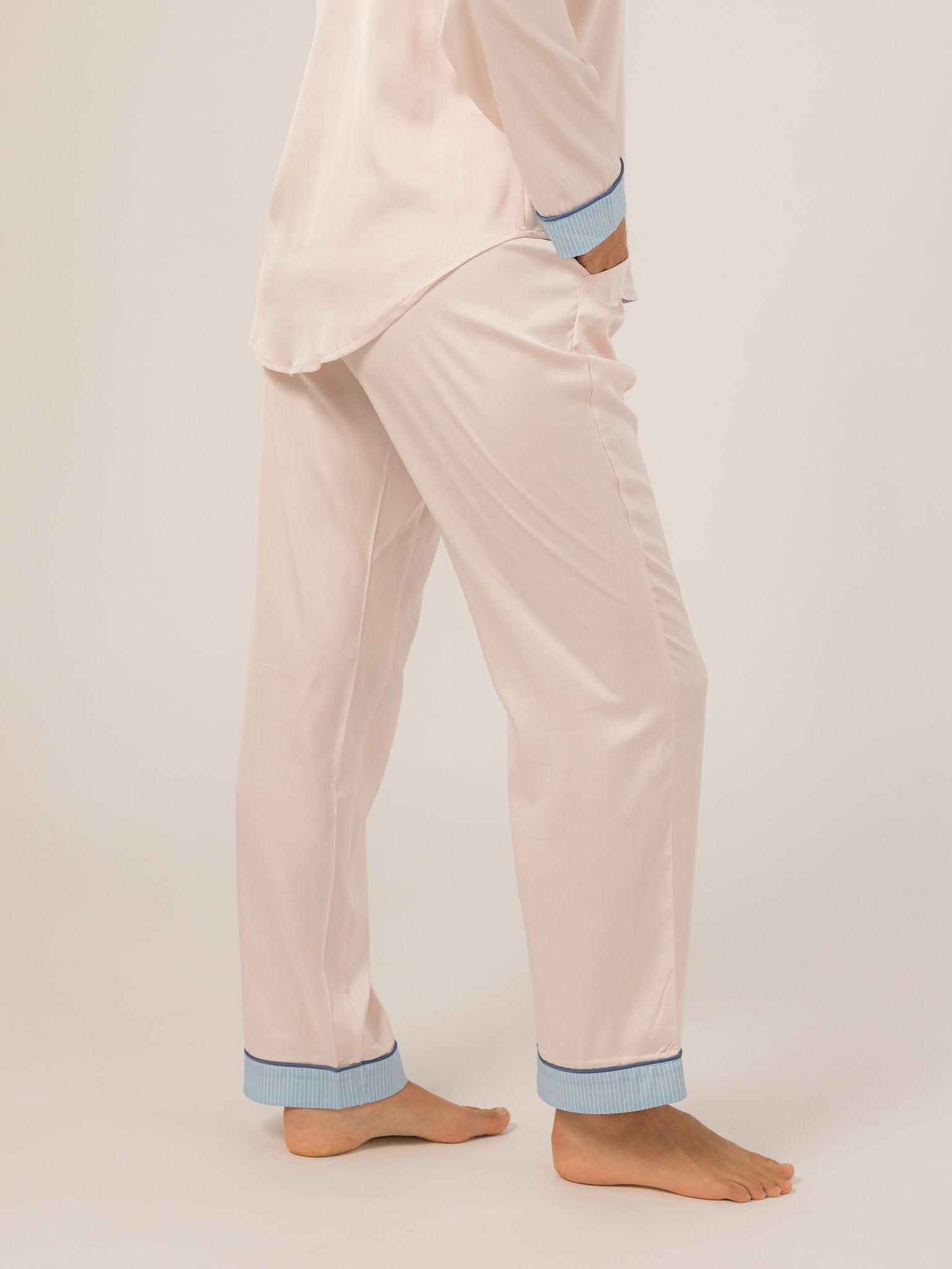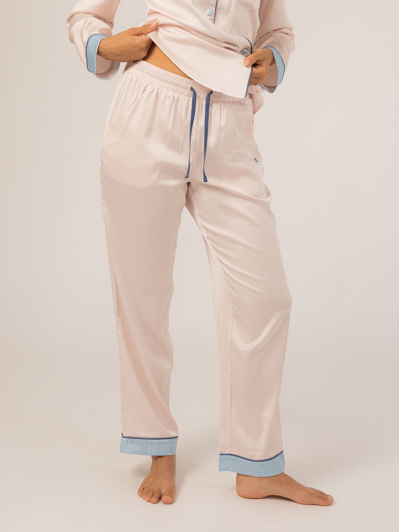 The Grace PJ Long Sleeve Set is my nighttime luxury essential. Made from our silky-soft Grace fabric, it has a smooth, elevated feel with just the right weight. With a classic button-up top, chest pocket, and straight-leg pants finished in contrast piping—this set feels like pure glam, even when you’re just lounging. – Keleigh ♡