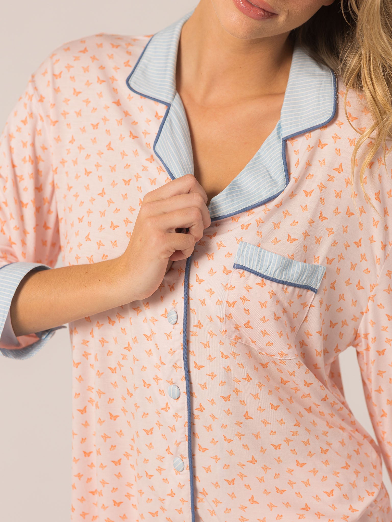 Slip into effortless luxury with the Rose PJ Long Sleeve Set. Made from our signature ultra-soft Rose fabric, this breathable set features a classic button-up top with chest pocket, sleeves that roll up and button for easy movement, and straight-leg pants with contrast piping and an adjustable waistband. It’s lightweight, cozy, and elevated—just how I like to unwind. – Keleigh ♡