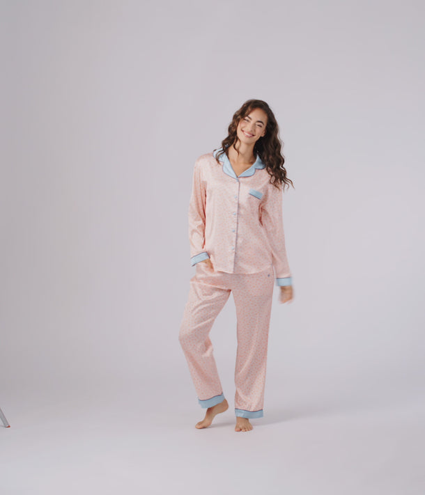 The Grace PJ Long Sleeve Set is my nighttime luxury essential. Made from our silky-soft Grace fabric, it has a smooth, elevated feel with just the right weight. With a classic button-up top, chest pocket, and straight-leg pants finished in contrast piping—this set feels like pure glam, even when you’re just lounging. – Keleigh ♡