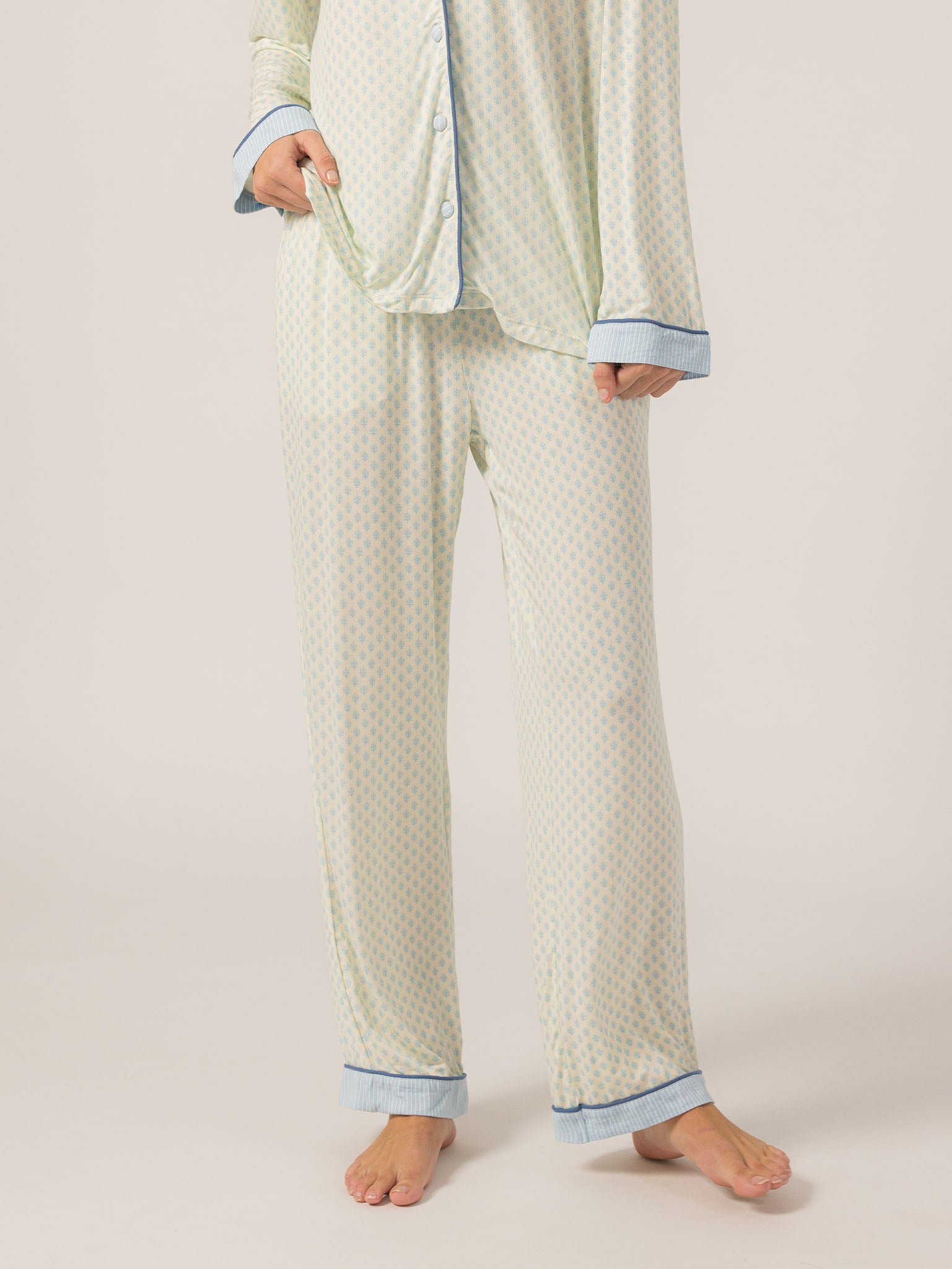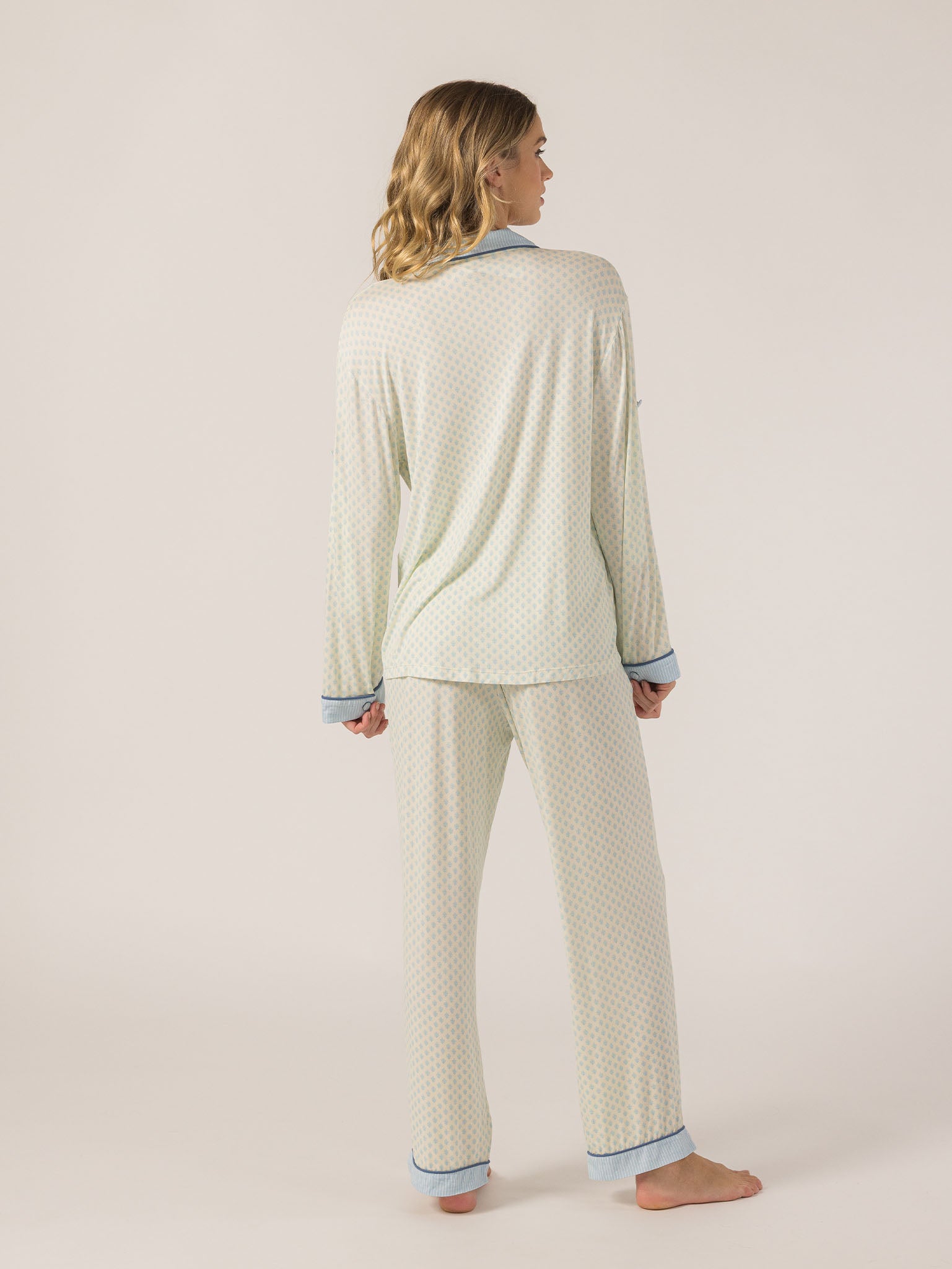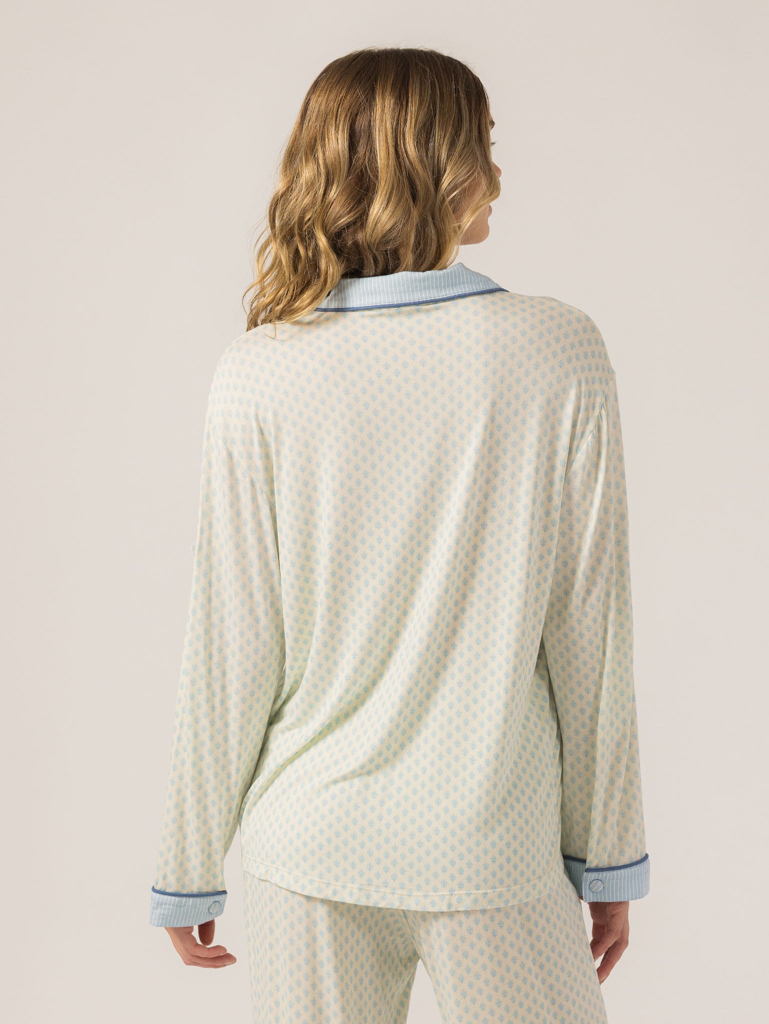Slip into effortless luxury with the Rose PJ Long Sleeve Set. Made from our signature ultra-soft Rose fabric, this breathable set features a classic button-up top with chest pocket and straight-leg pants with contrast piping and an adjustable waistband. It’s lightweight, cozy, and elevated—just how I like to unwind. – Keleigh ♡