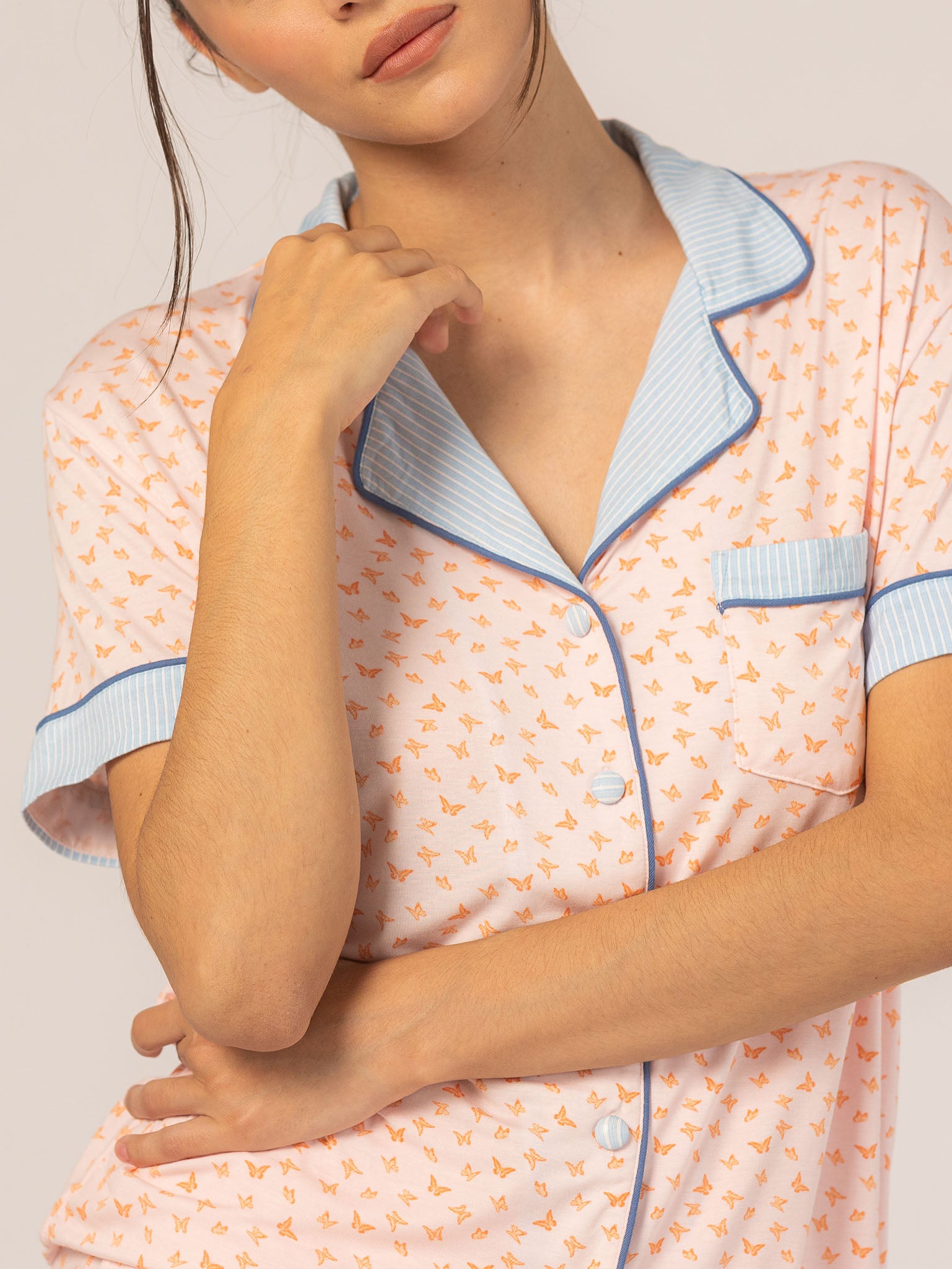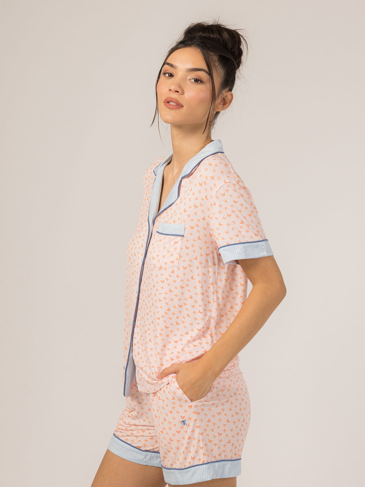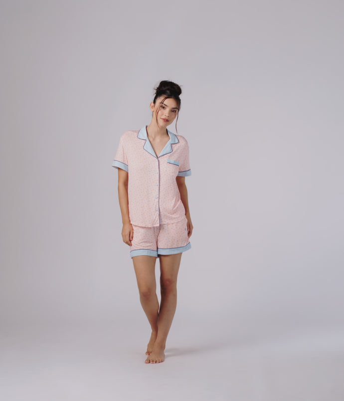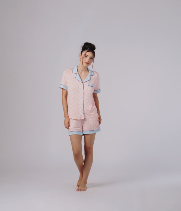 Cozy meets cute in the Rose PJ Short Sleeve Set. Made from our dreamy-soft Rose fabric, this lightweight set features a short sleeve button-up top with chest pocket and matching shorts with an adjustable waistband. It’s breathable, premium, and perfect for lounging in style—day or night. My go-to for relaxed mornings. – Keleigh ♡