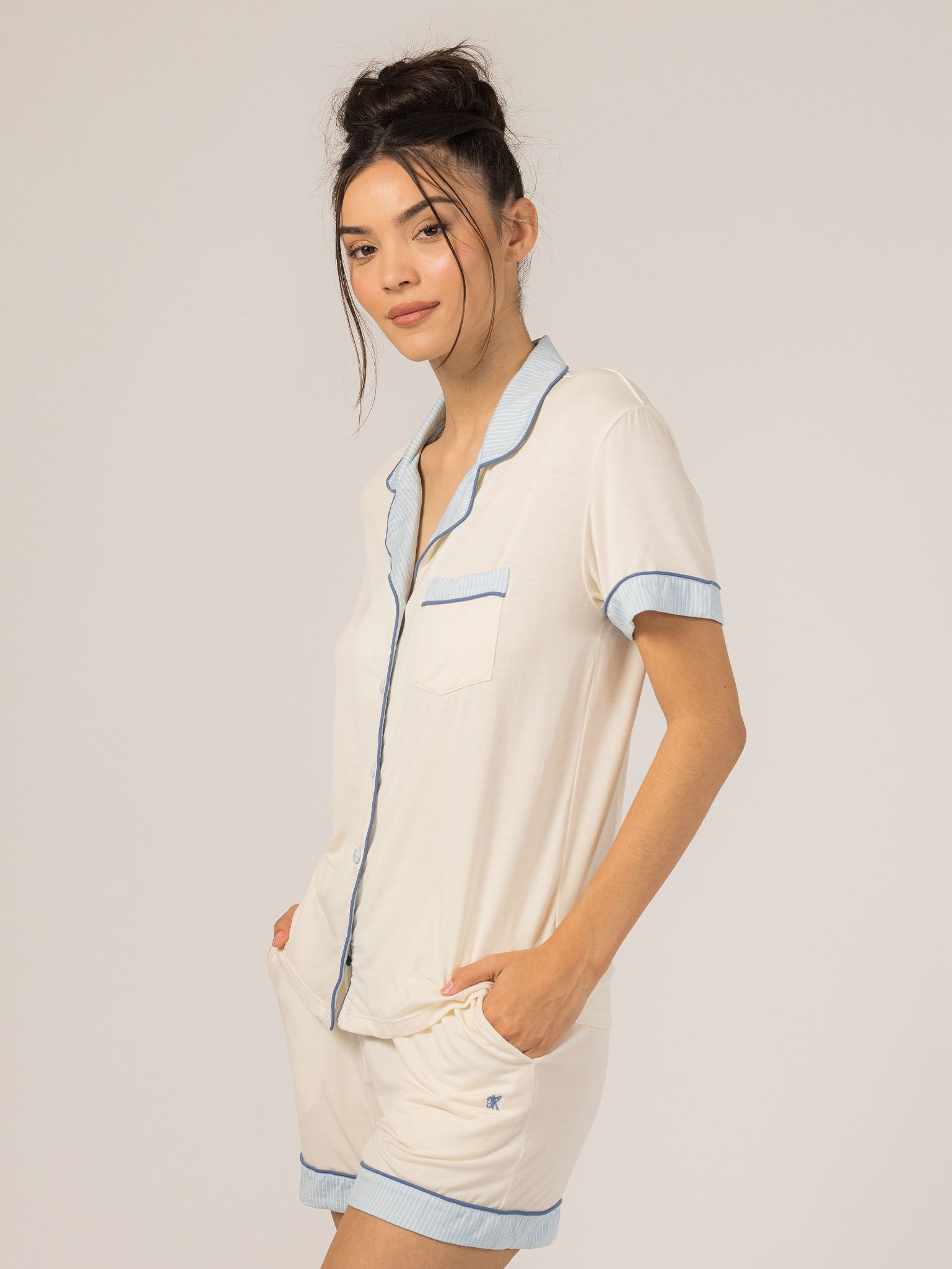 Cozy meets cute in the Rose PJ Short Sleeve Set. Made from our dreamy-soft Rose fabric, this lightweight set features a short sleeve button-up top with chest pocket and matching shorts with an adjustable waistband. It’s breathable, premium, and perfect for lounging in style—day or night. My go-to for relaxed mornings. – Keleigh ♡