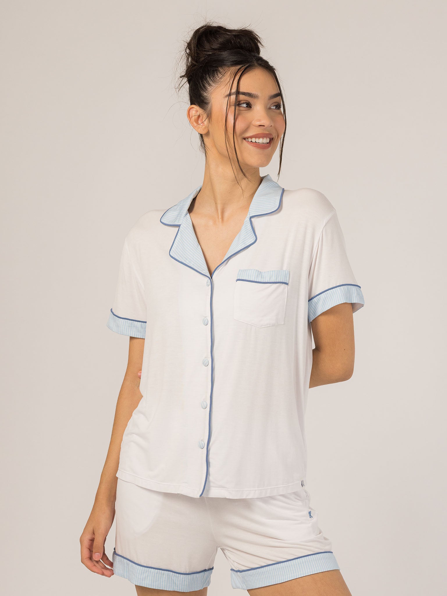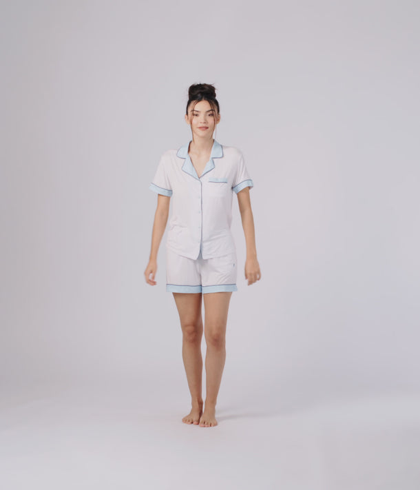 Cozy meets cute in the Rose PJ Short Sleeve Set. Made from our dreamy-soft Rose fabric, this lightweight set features a short sleeve button-up top with chest pocket and matching shorts with an adjustable waistband. It’s breathable, premium, and perfect for lounging in style—day or night. My go-to for relaxed mornings. – Keleigh ♡