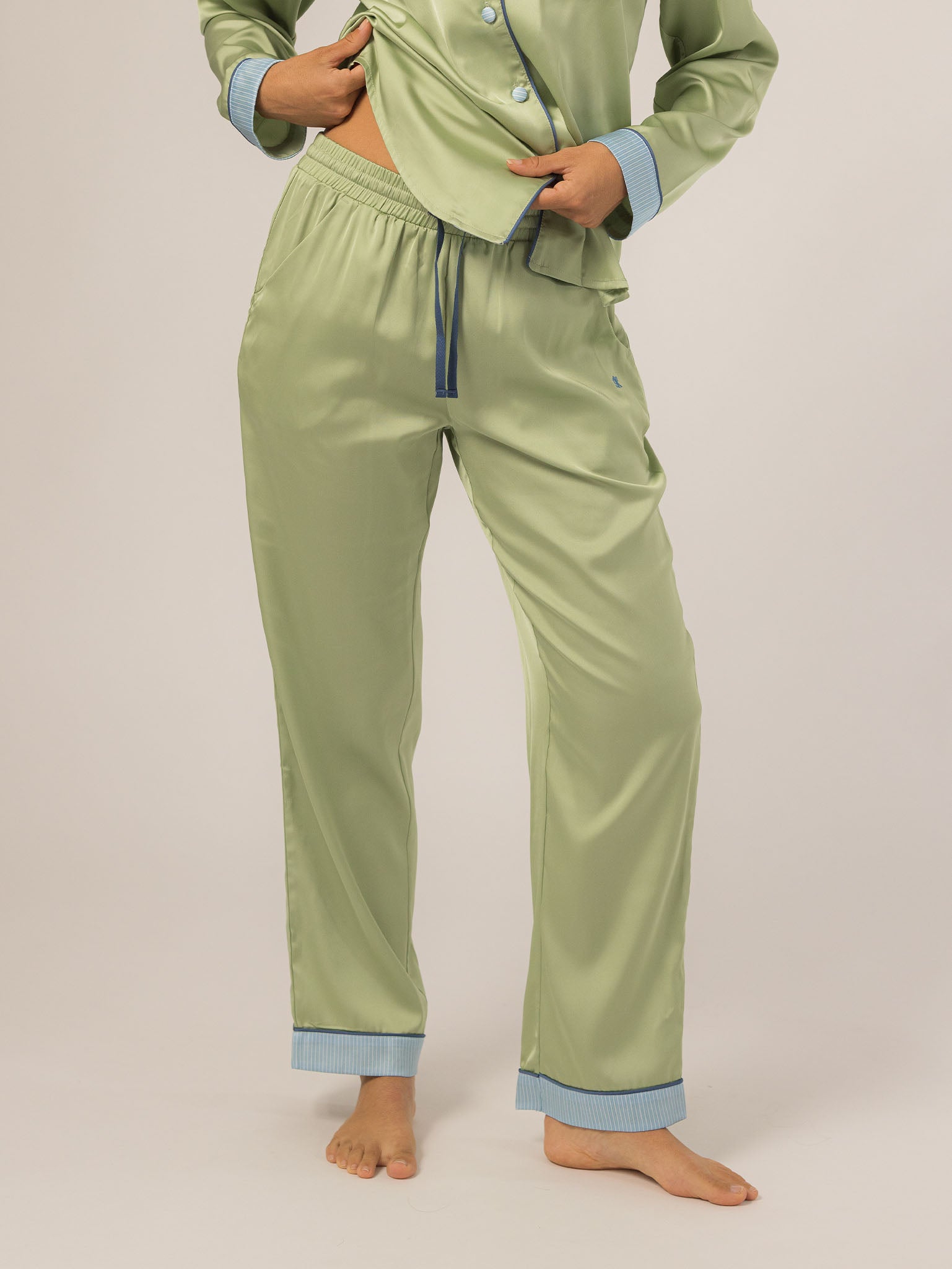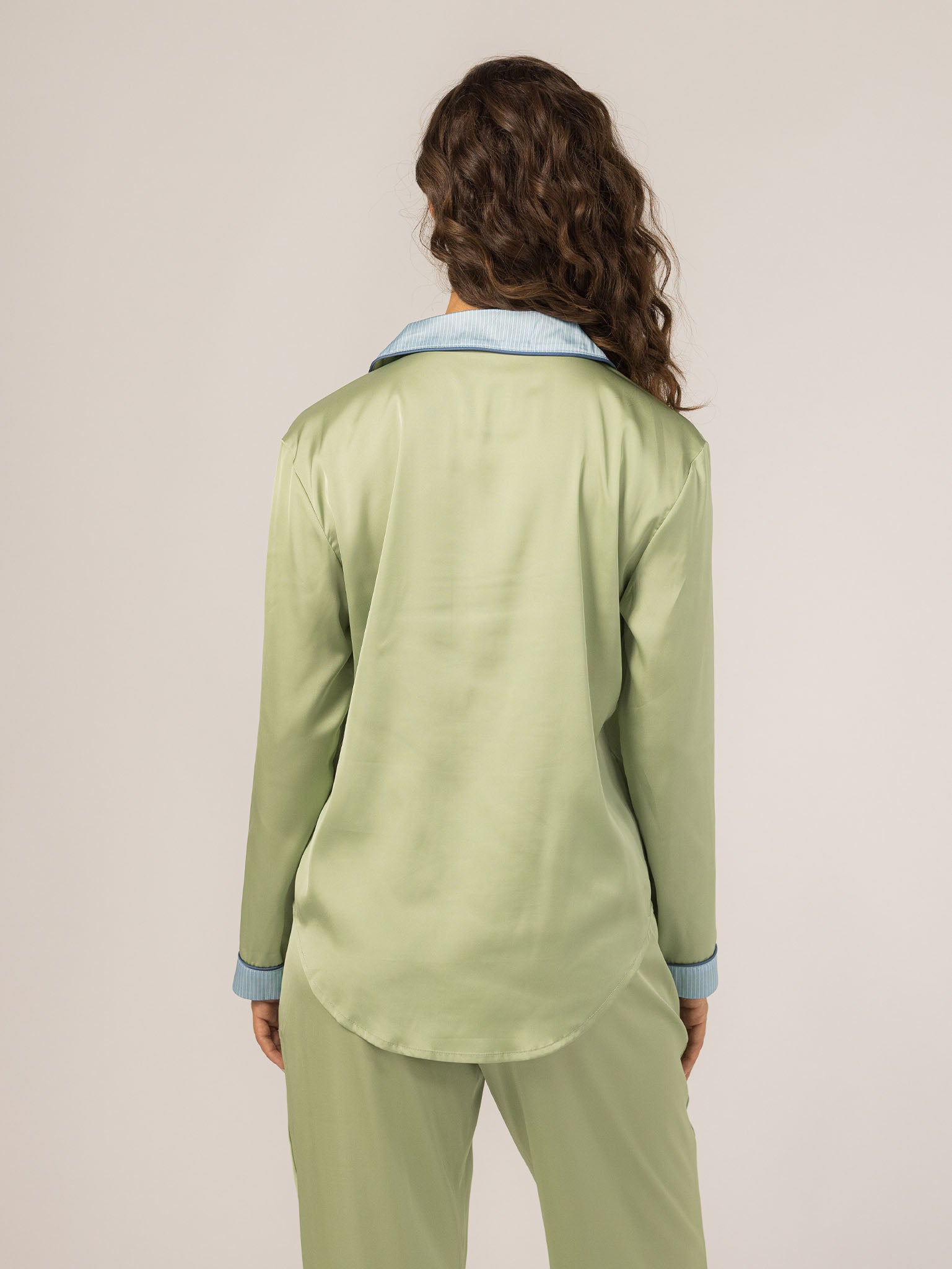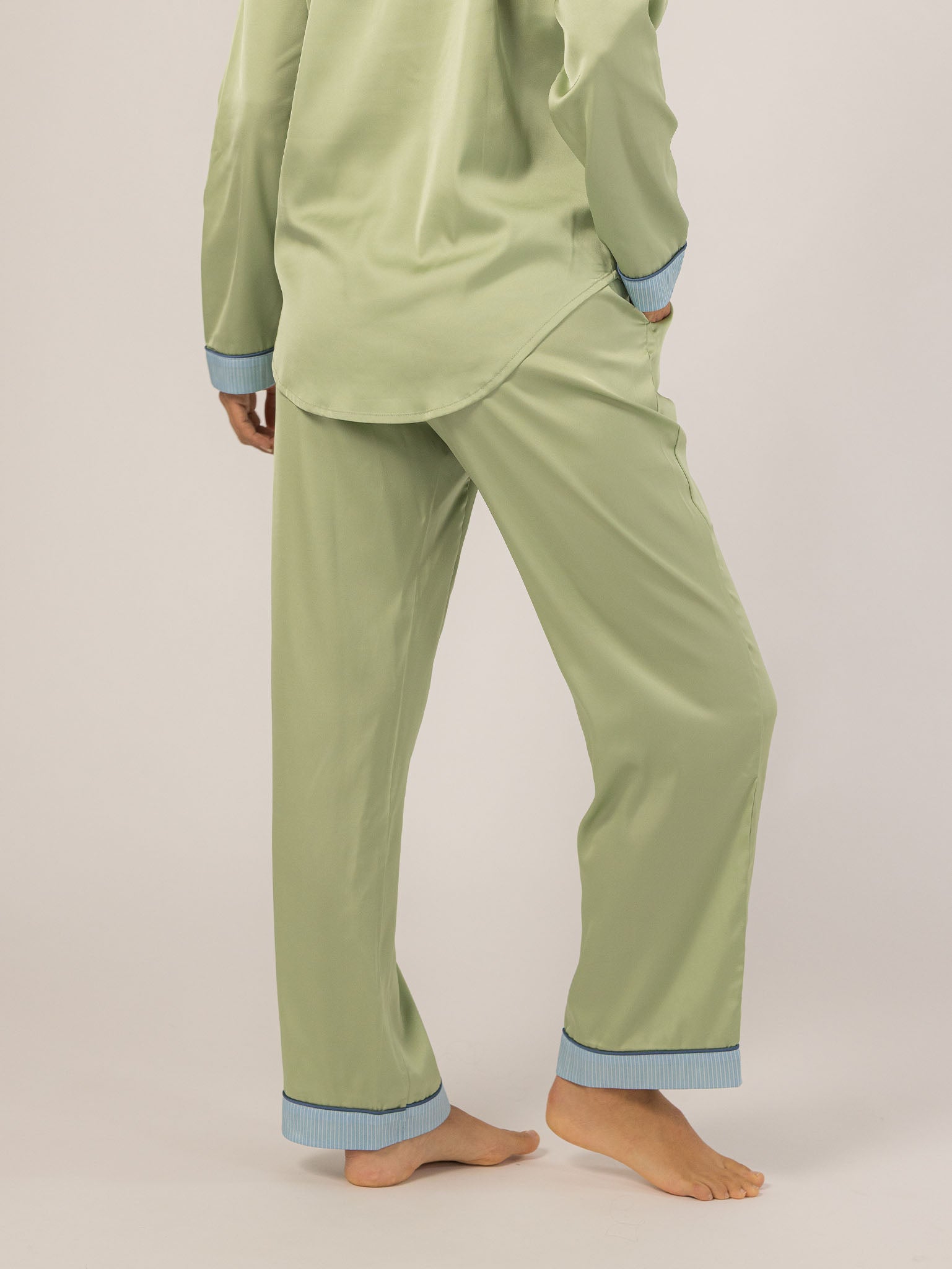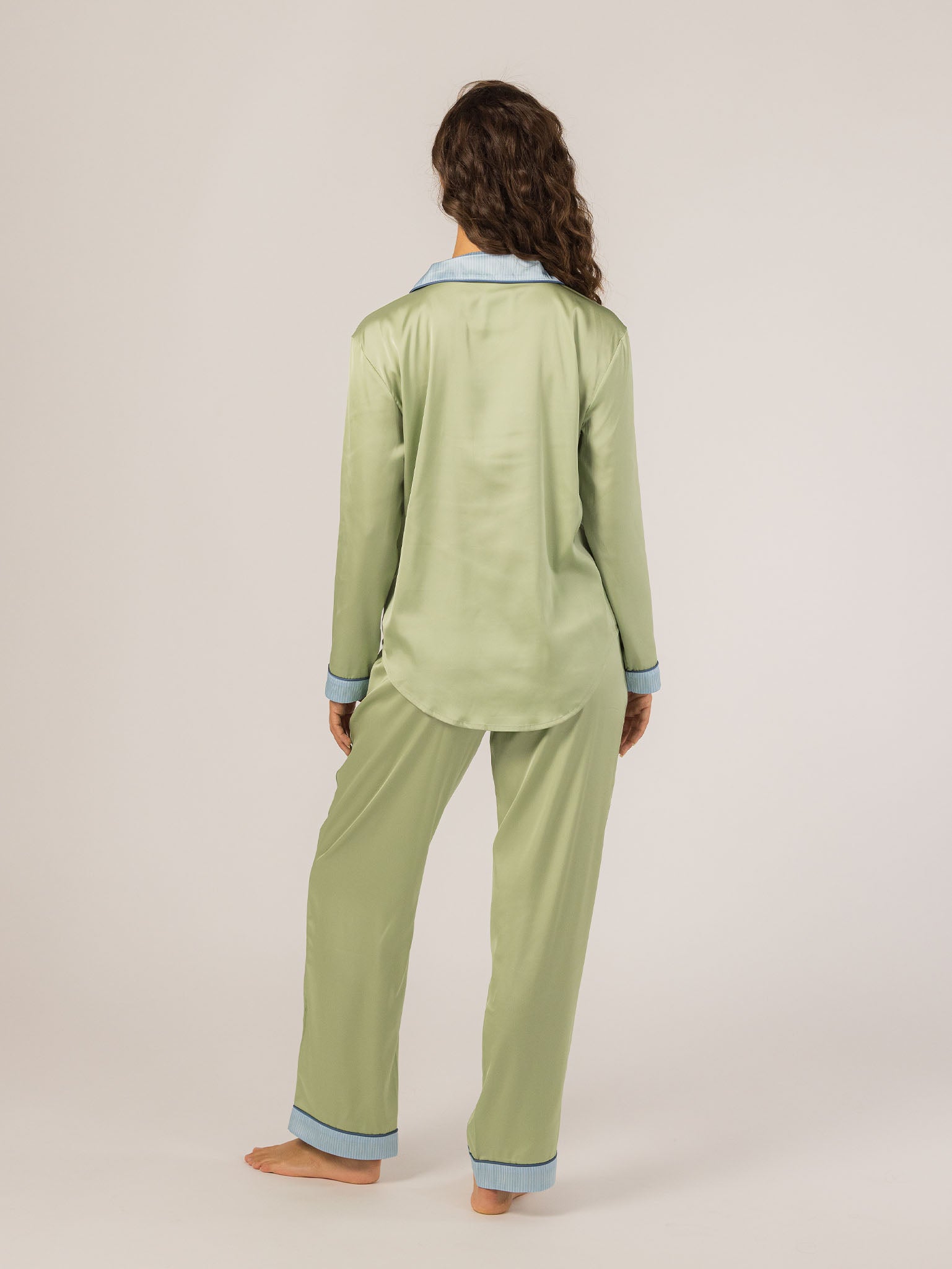The Grace PJ Long Sleeve Set is my nighttime luxury essential. Made from our silky-soft Grace fabric, it has a smooth, elevated feel with just the right weight. With a classic button-up top, chest pocket, and straight-leg pants finished in contrast piping—this set feels like pure glam, even when you’re just lounging. – Keleigh ♡