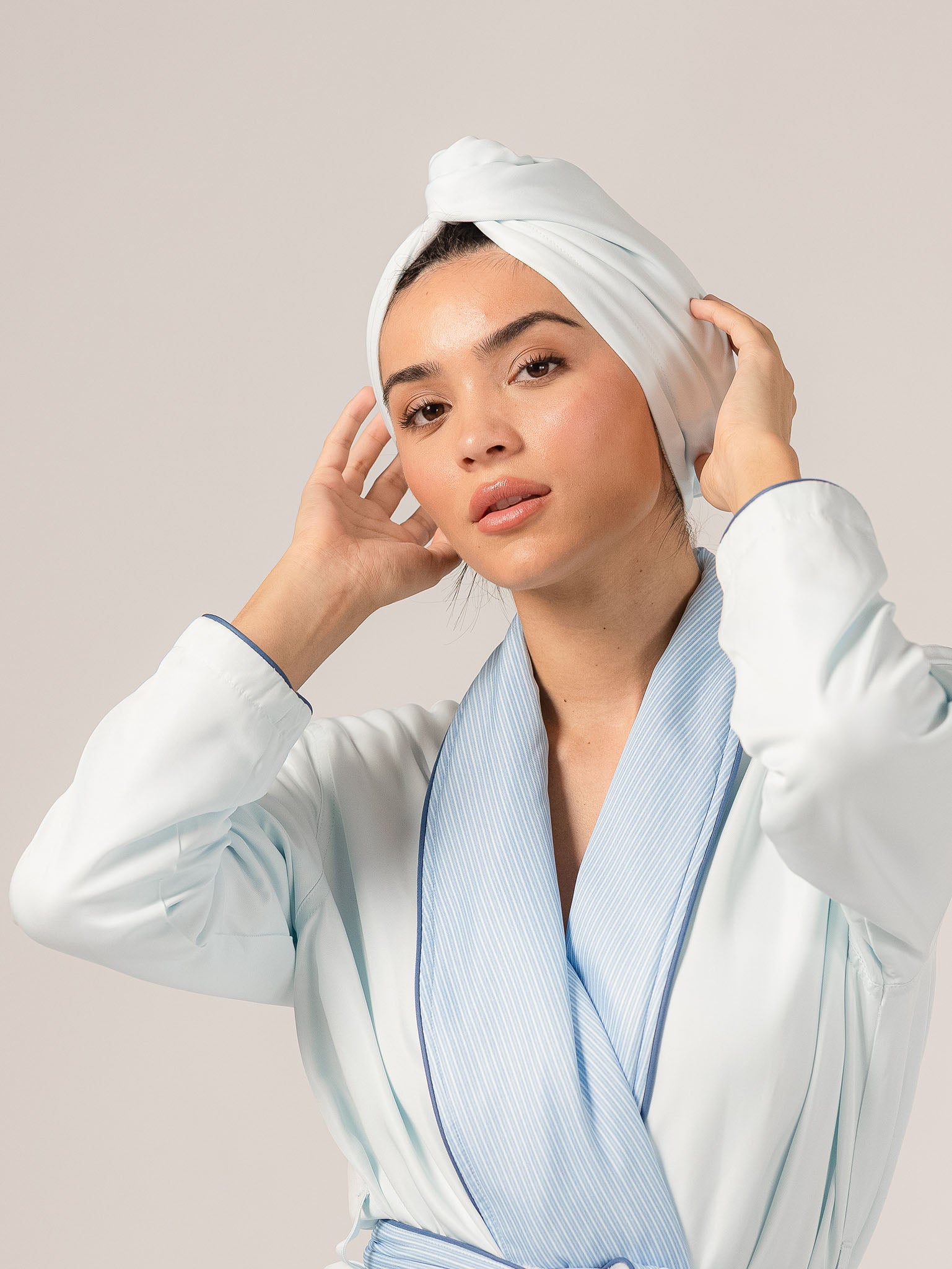 The Leona Reversible Robe is my everyday luxury must-have. One side feels like a silky down comforter, the other like the softest spa towel—so you always get the best of both worlds. With a chic pine-stripe lapel and cozy wrap tie, it’s the robe I never want to take off. – Keleigh ♡