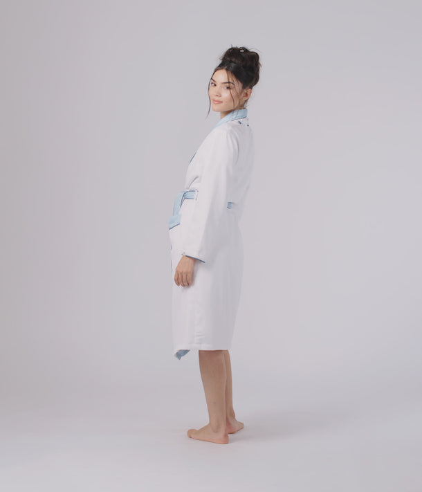 Soft spa towel on one side, silky comforter on the other. Our reversible robe wraps you in pure luxury.
