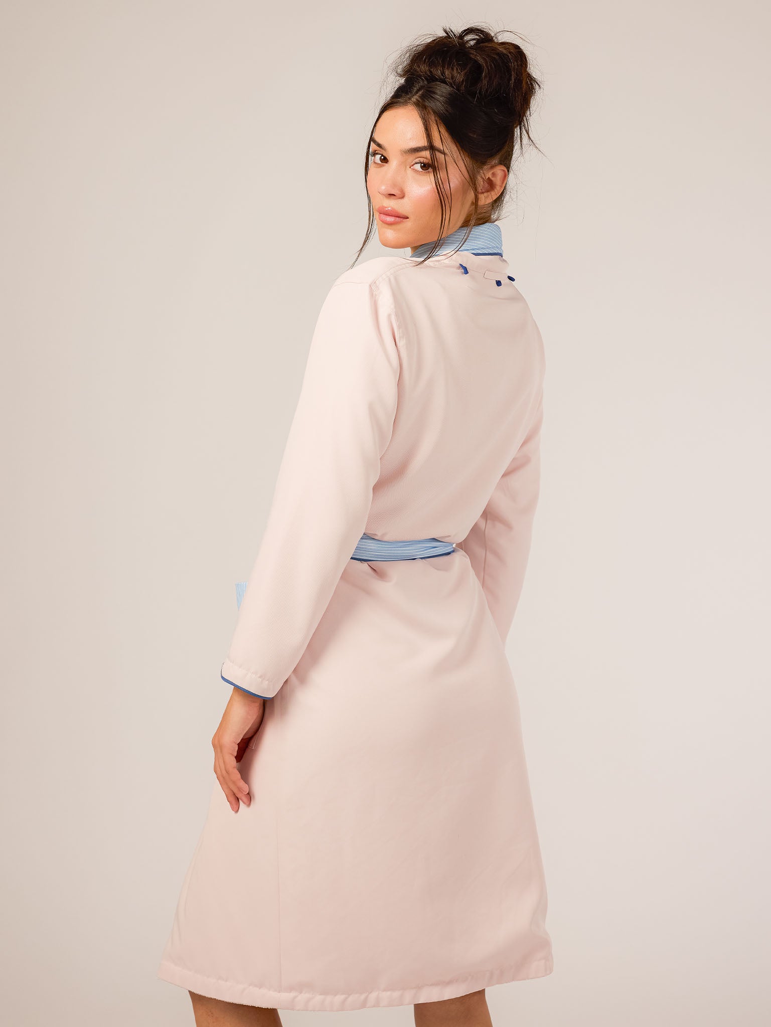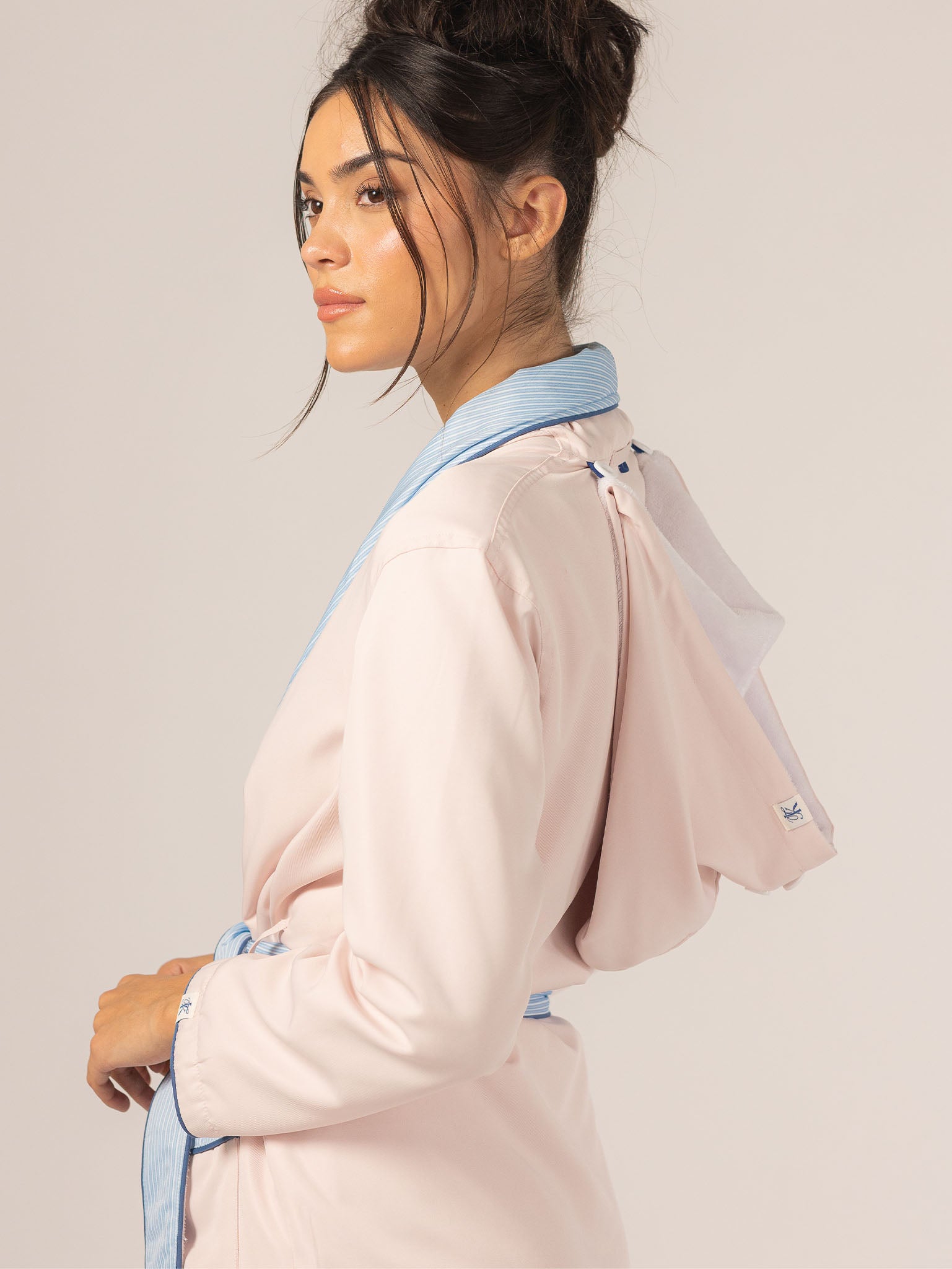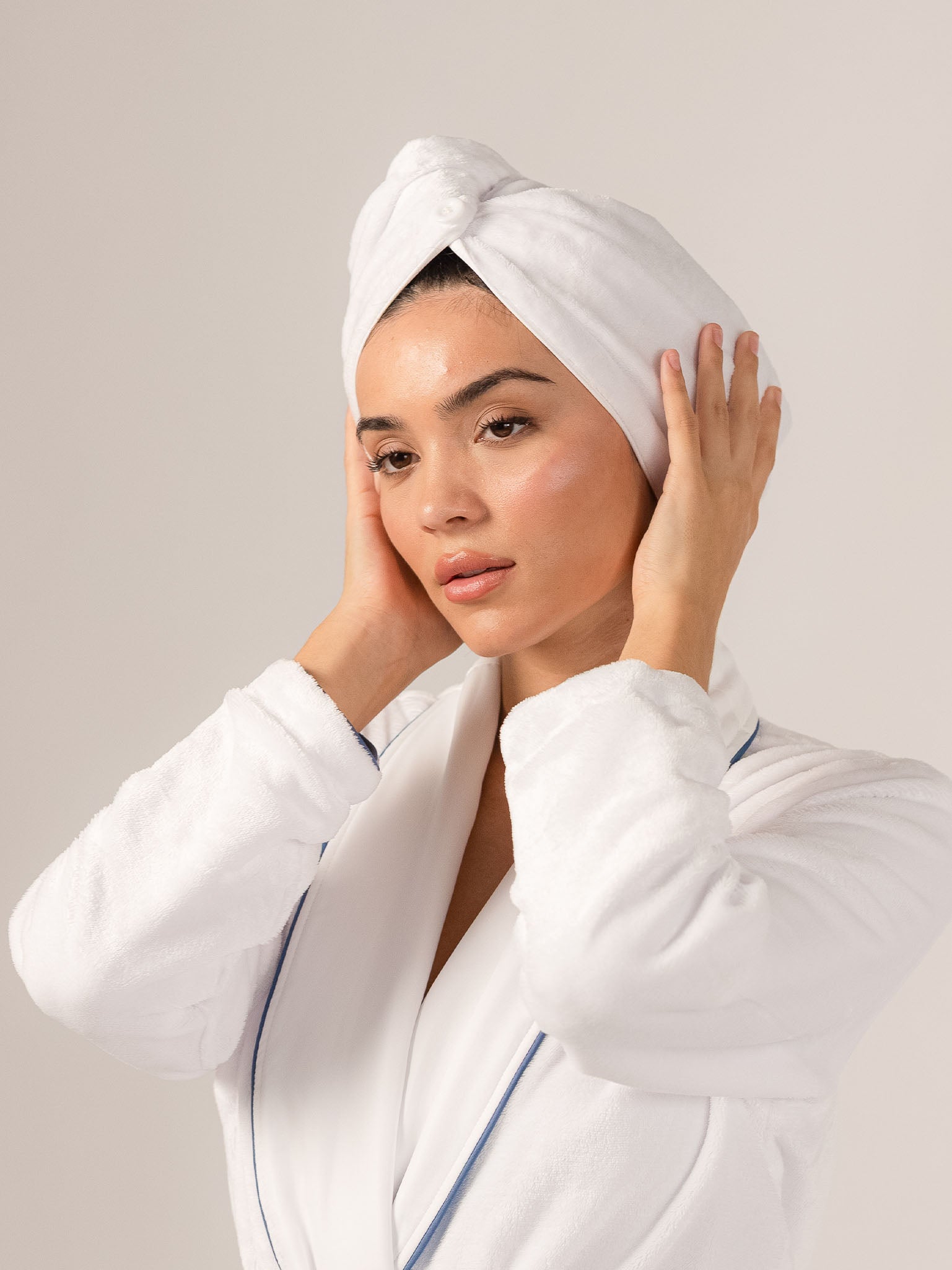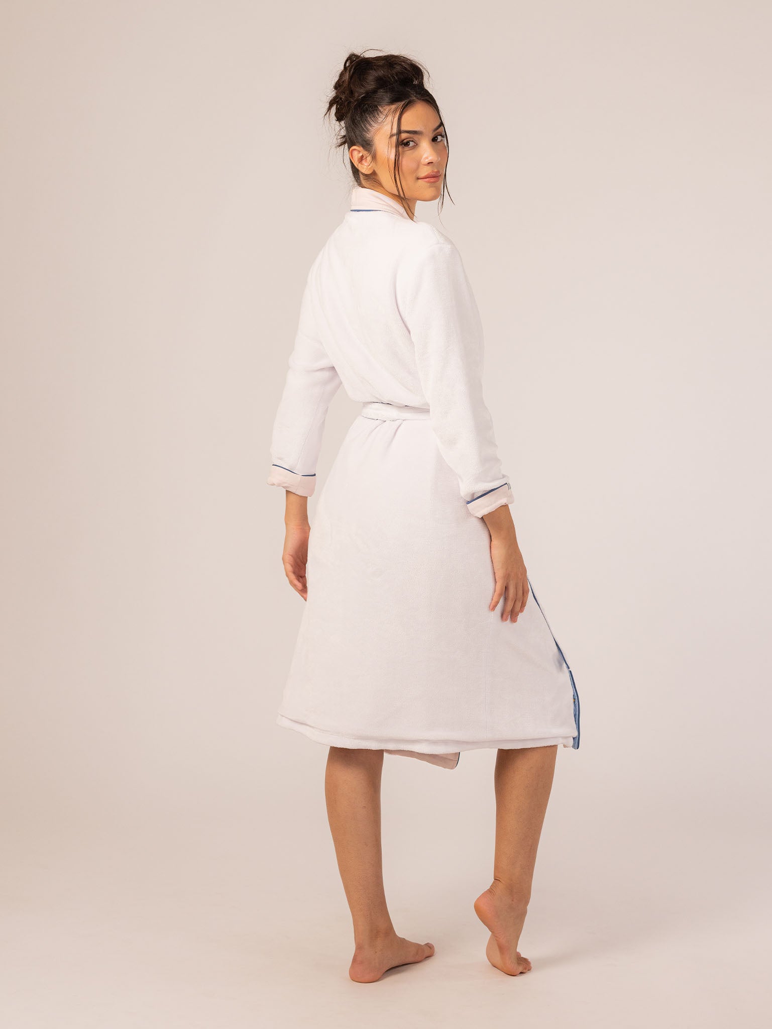 The Leona Reversible Robe is my everyday luxury must-have. One side feels like a silky down comforter, the other like the softest spa towel—so you always get the best of both worlds. With a chic pine-stripe lapel and cozy wrap tie, it’s the robe I never want to take off. – Keleigh ♡