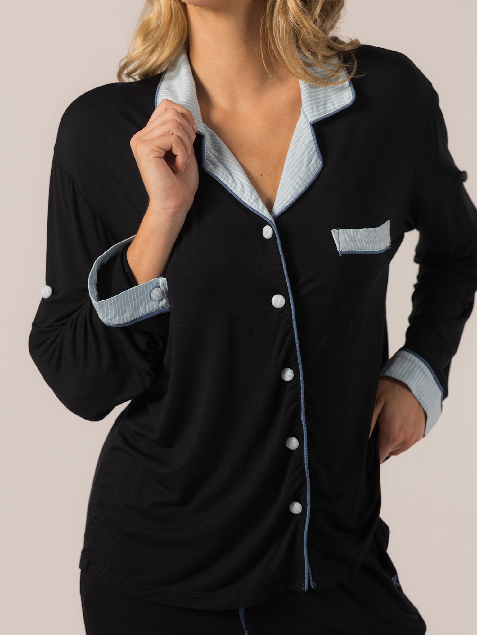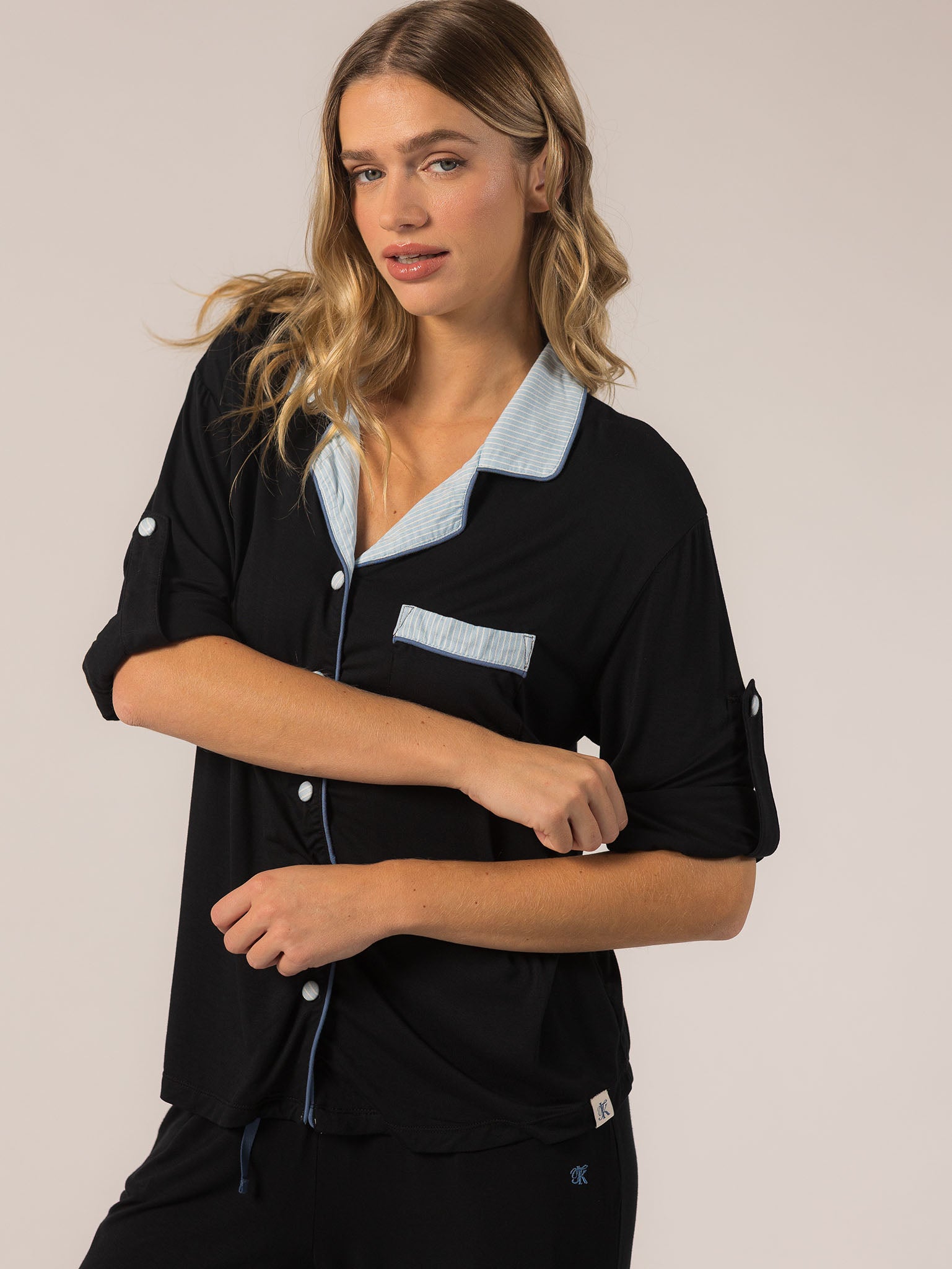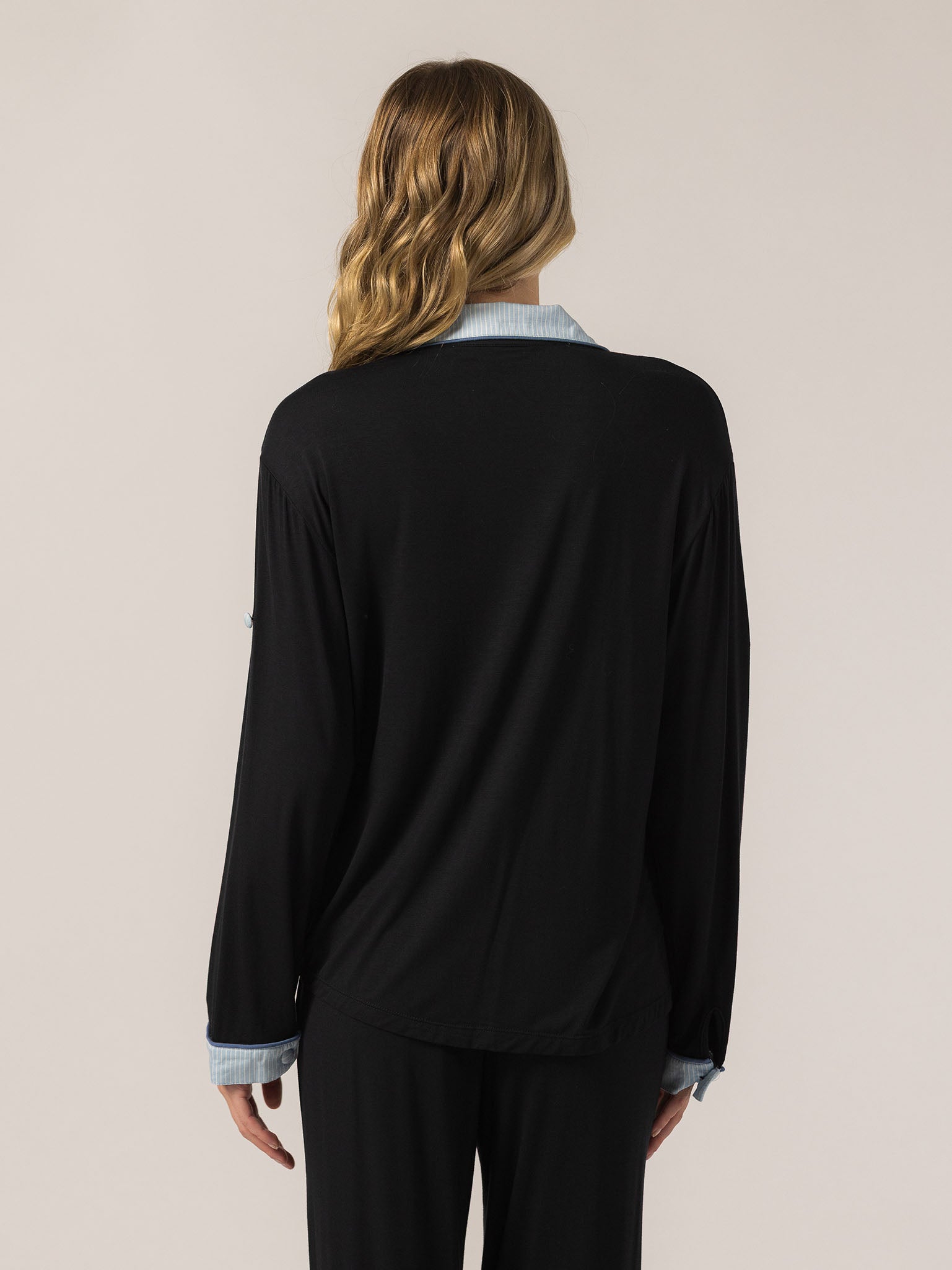Slip into effortless luxury with the Rose PJ Long Sleeve Set. Made from our signature ultra-soft Rose fabric, this breathable set features a classic button-up top with chest pocket and straight-leg pants with contrast piping and an adjustable waistband. It’s lightweight, cozy, and elevated—just how I like to unwind. – Keleigh ♡