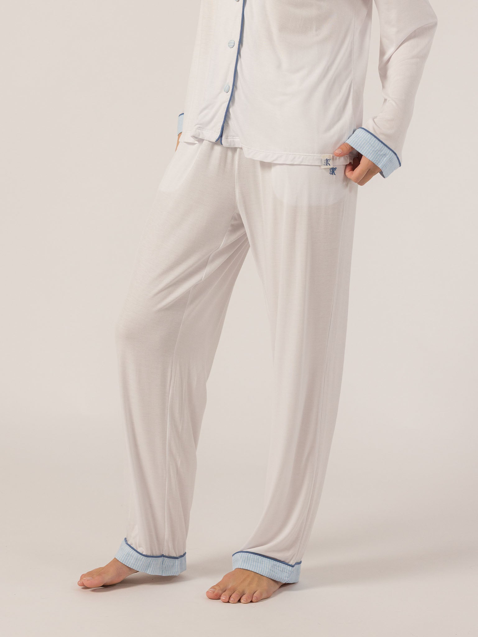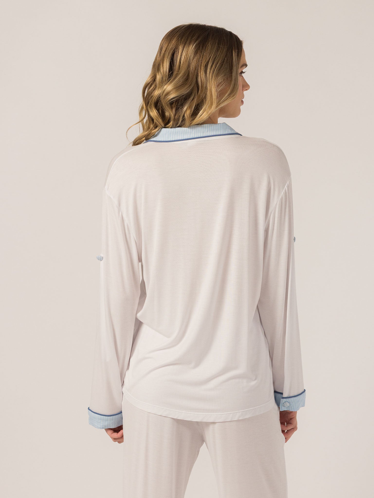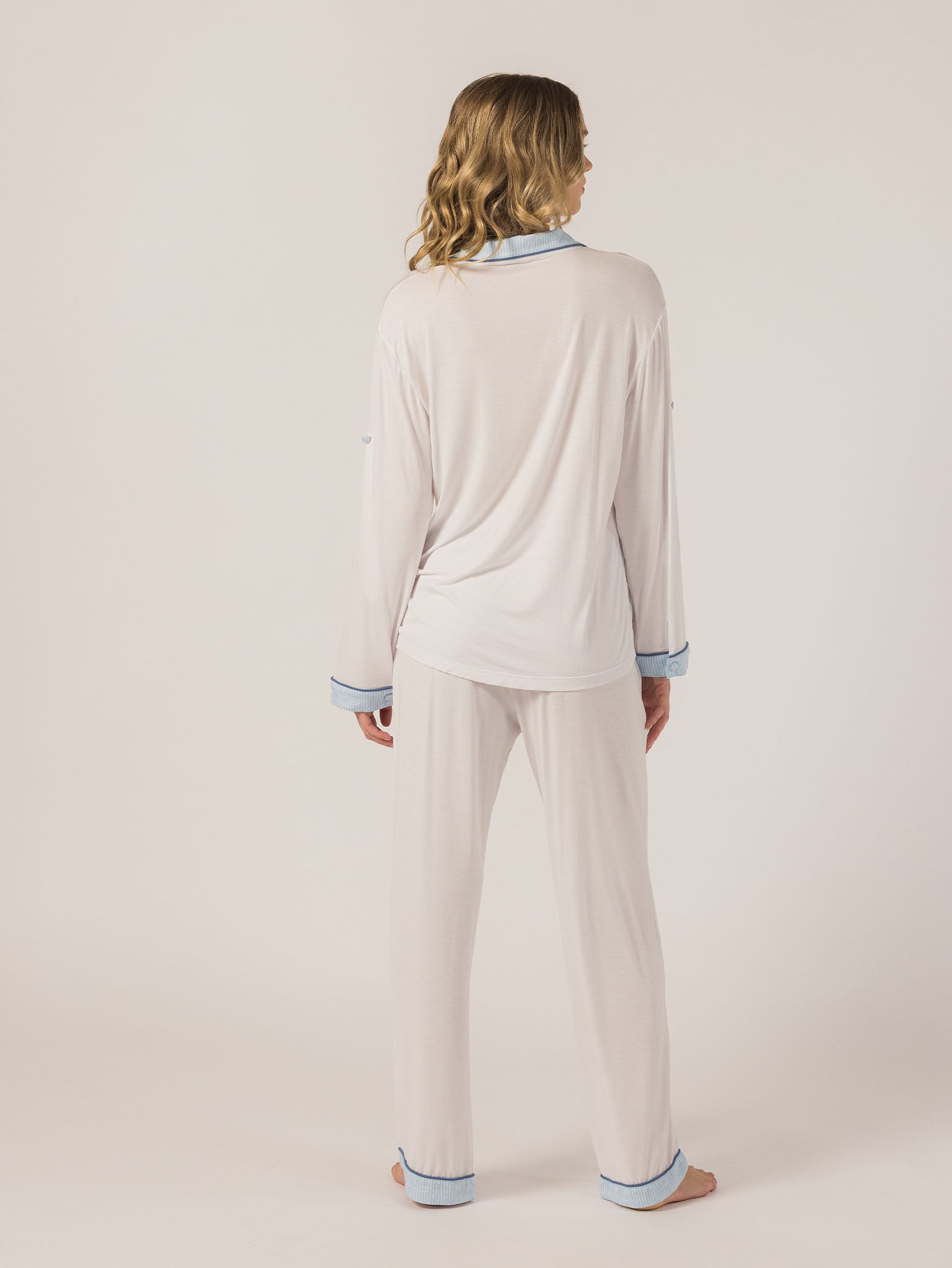 Slip into effortless luxury with the Rose PJ Long Sleeve Set. Made from our signature ultra-soft Rose fabric, this breathable set features a classic button-up top with chest pocket and straight-leg pants with contrast piping and an adjustable waistband. It’s lightweight, cozy, and elevated—just how I like to unwind. – Keleigh ♡