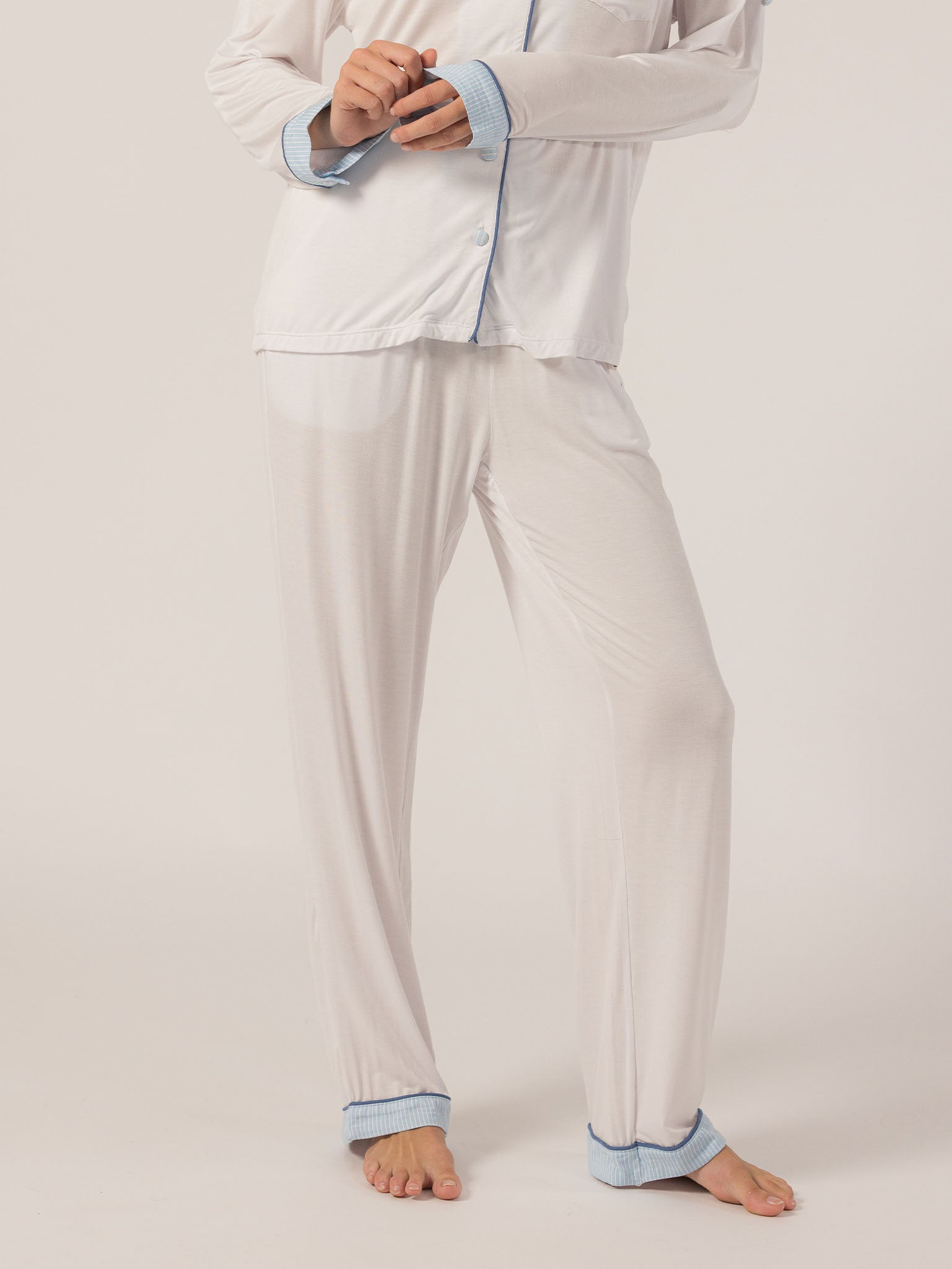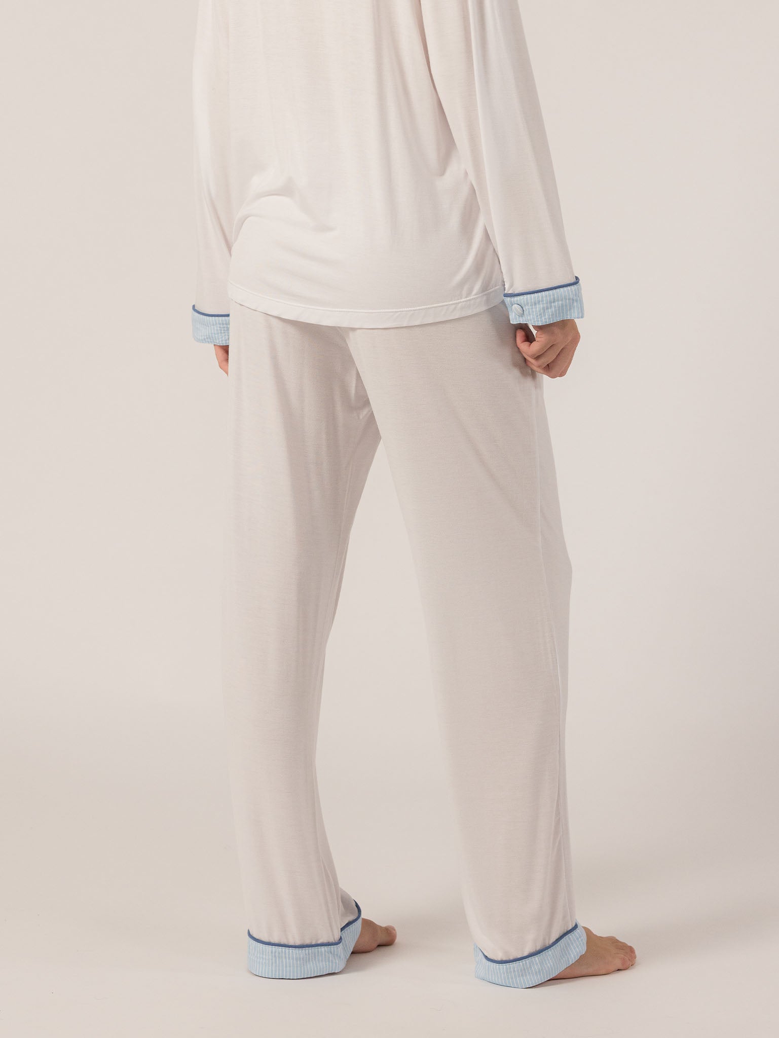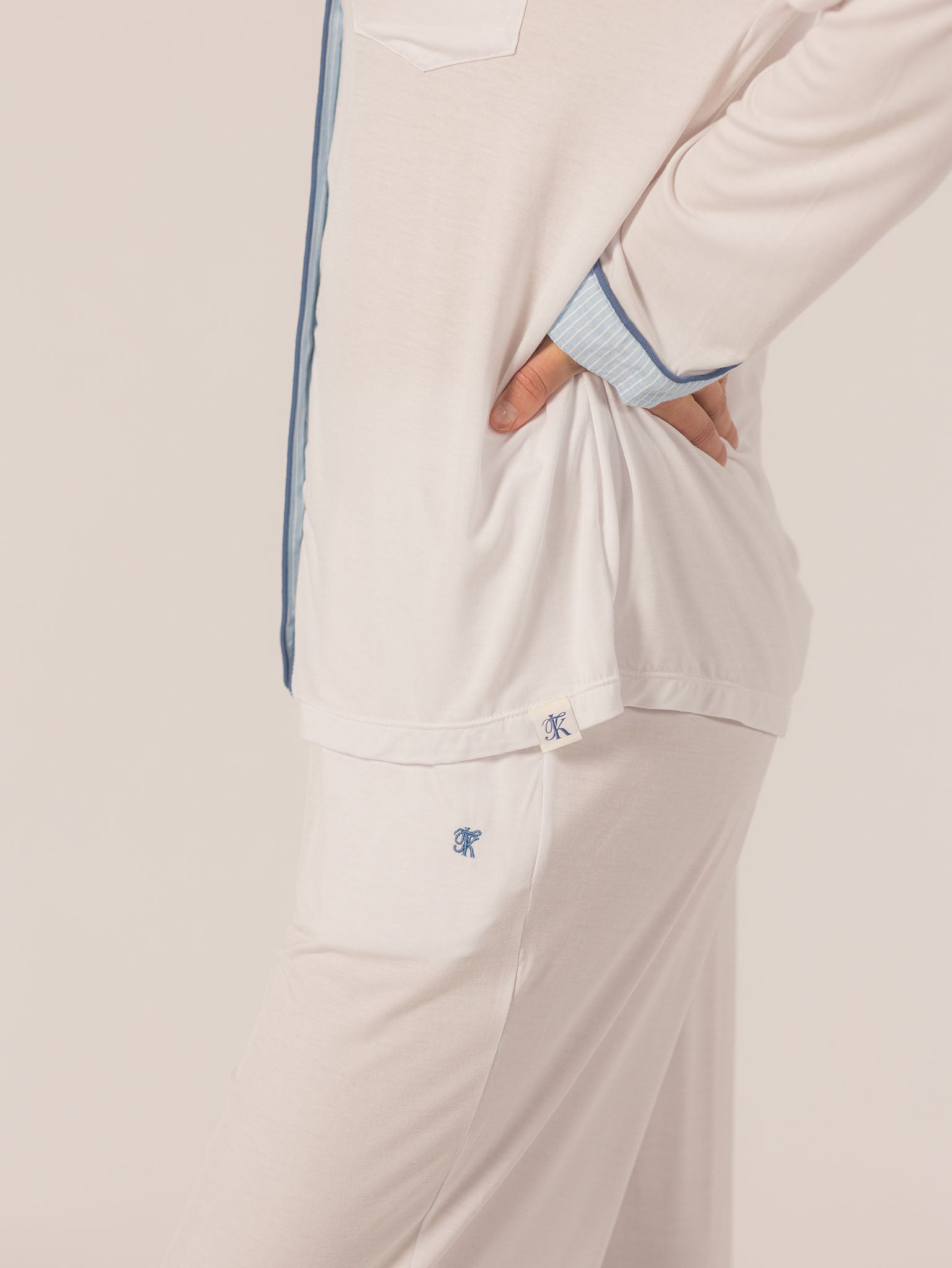 Slip into effortless luxury with the Rose PJ Long Sleeve Set. Made from our signature ultra-soft Rose fabric, this breathable set features a classic button-up top with chest pocket and straight-leg pants with contrast piping and an adjustable waistband. It’s lightweight, cozy, and elevated—just how I like to unwind. – Keleigh ♡